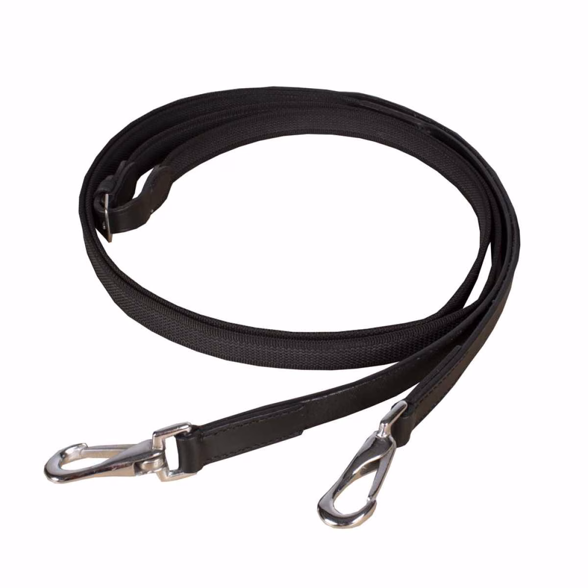 Fijne ant-slip teugel, leer met rubber doorweven band. De teugel is uitgevoerd met een clip om snel en gemakkelijk aan het bit te bevestigen.… Lees meer