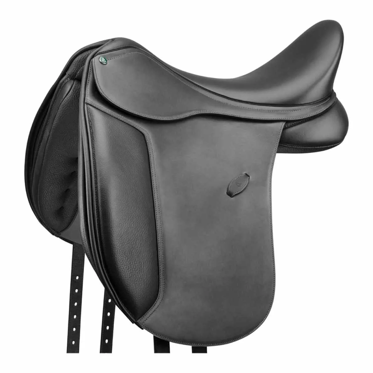 Fijn dressuurzadel van leer met kunststof onderzijde. Aangenaam zitten op leer, gemakkelijk onderhoud van het kunststof. Ideale verstelmogelijkheden door de verwisselbare boom en optionele pads. Uitgevoerd met gel kussens. (Hart/Cair systeem)… Lees meer