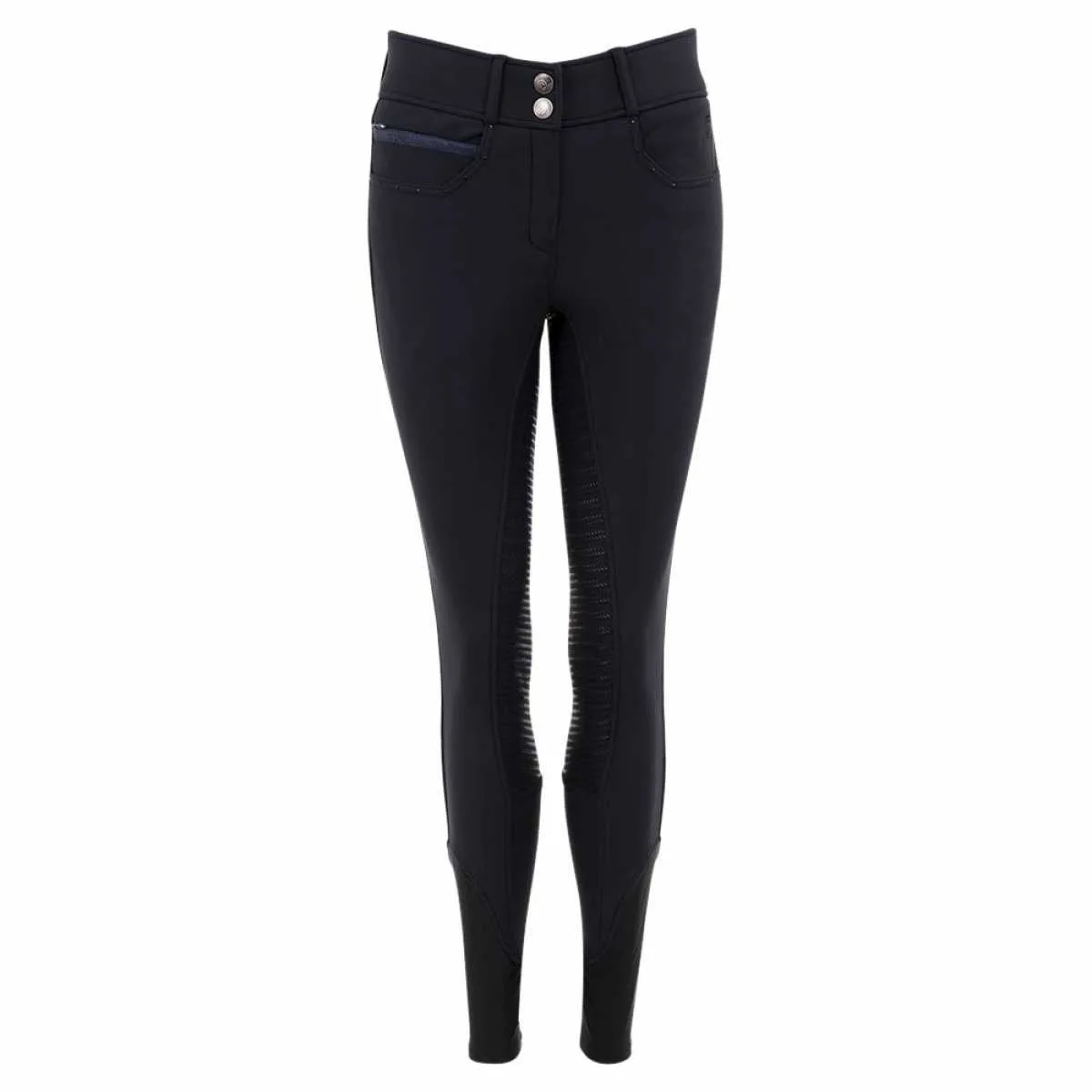 – Anky Stone Taped Rijbroek – Chique donkerblauwe rijbroek – De broek heeft op de voor – en achterzijde blauwe strass steentjes – Broekzak met blinde sluiting aan de voorzijde – Op de achterzijde twee steekzakken – Full Grip