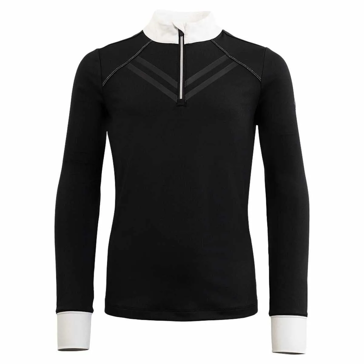 Wedstrijdshirt voor kinderen met lange mouwen en opstaande kraag. Gemaakt van fijne rekbare soepele stof. Vocht regulerend en snel drogend. Voorzien van een zilveren rits aan de voorzijde.… Lees meer
