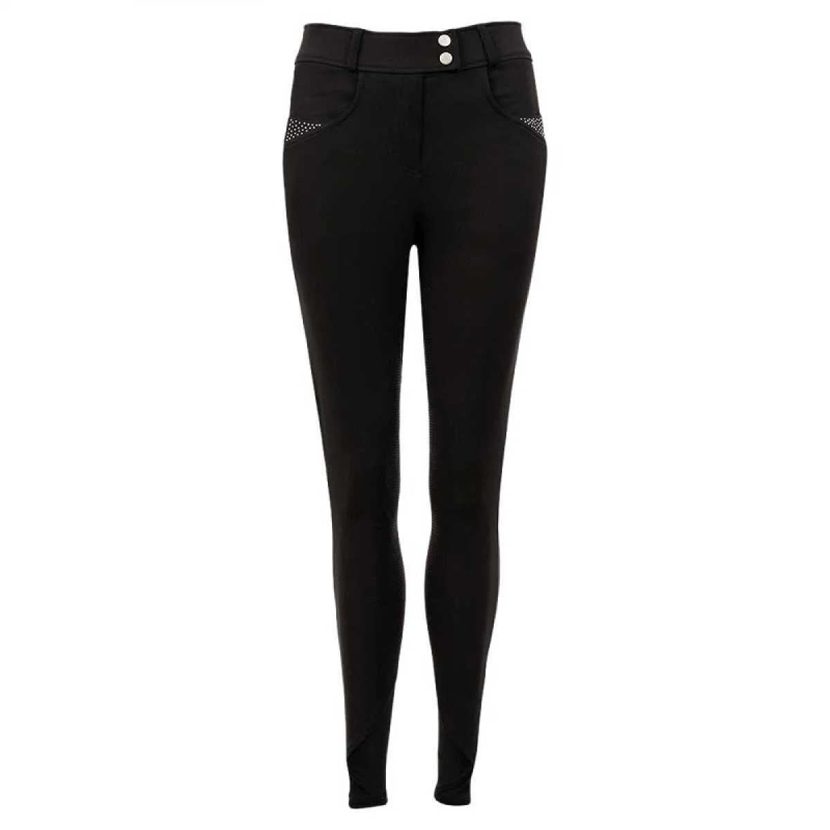 De BR Fabienne rijbroek FG heeft een comfortabele elastische tailleband met een hoge achterkant. De broek is gemaakt van een duurzame elastische stof en blijft perfect in vorm, hetgeen zorgt voor een hoog draagcomfort. De rijbroek is voorzien van twee steekzakken aan de voorkant met strasssteentjes. Ook op de achterkant bevinden zich strasssteentjes en een geborduurd BR-logo. De riiemlussen en zakken zijn afgewerkt met glitterstiksels. Het telefoonzakje maakt deze broek compleet.… Lees meer