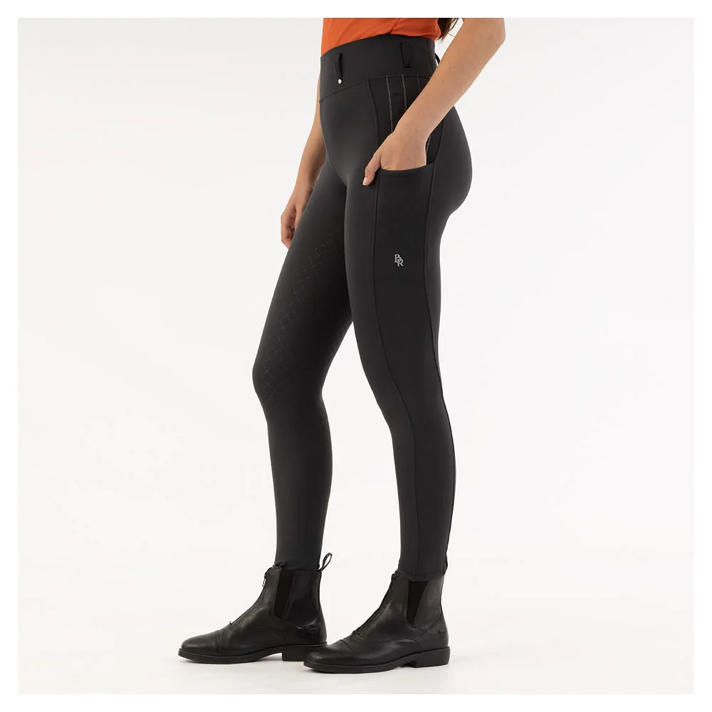 BR legging met siliconen grip in de vorm van het BR logo. Erg comfortable door de stretch stof en hoge boord met riemlussen. Uitgevoerd met twee telefoonzakken en glitter siliconen strepen in de zijnaden. De broek is bovendien ook nog waterdicht!… Lees meer